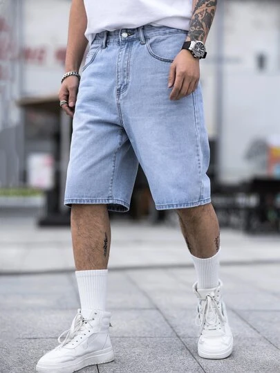 Manfinity Men Slant Pocket Denim Shorts - Light Wash - View 1