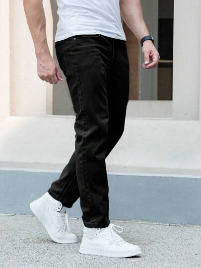 Men Slant Pocket Straight Leg Jeans, Grunge - Black - View 1