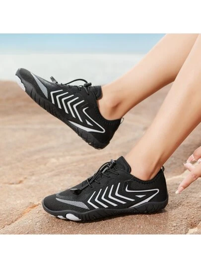 Men Striped Graphic Drawstring Design Creek Shoes, Sporty Sneakers - Black - View 1