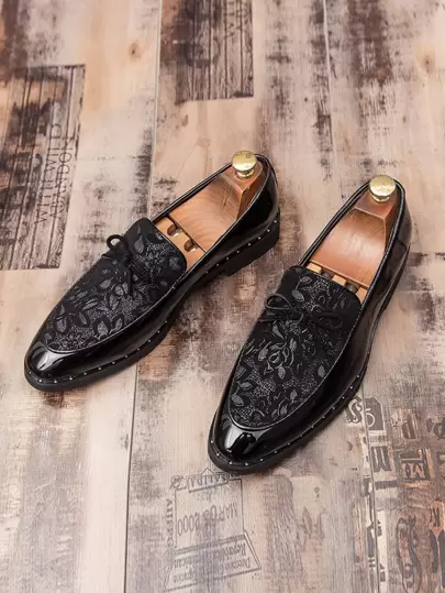 Men Textured Metal Decor Dress Loafers - Black - View 1
