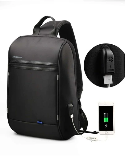 Men USB Charging Port Sling Bag - Black - View 1