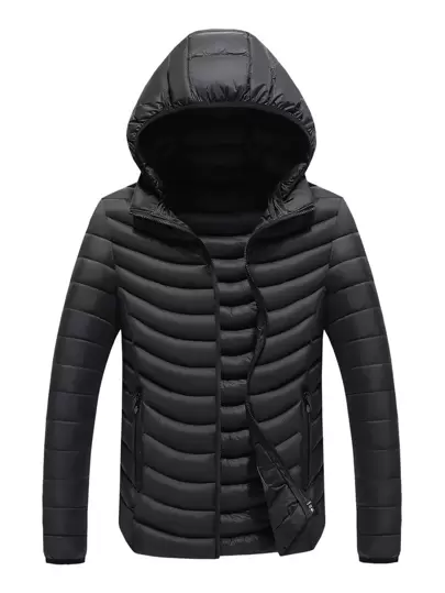 Manfinity Men Zip Pocket Hooded Padded Coat - Black - View 1