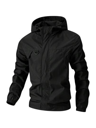 Men's Casual, Outdoor Lightweight Zip-Up Hooded Jacket, Spring/Autumn - Black - View 1