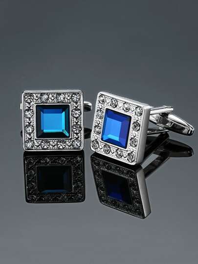 1pc Blue Navy Blue Man-made Crystal Square Shaped Cufflinks For Men, Classic Cufflinks - Multicolor - View 1