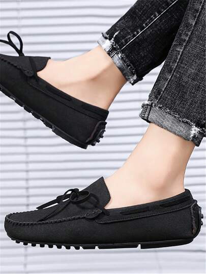 Men's Flat Loafers, Driving Shoes, Solid Color Casual Shoes - Black - View 1