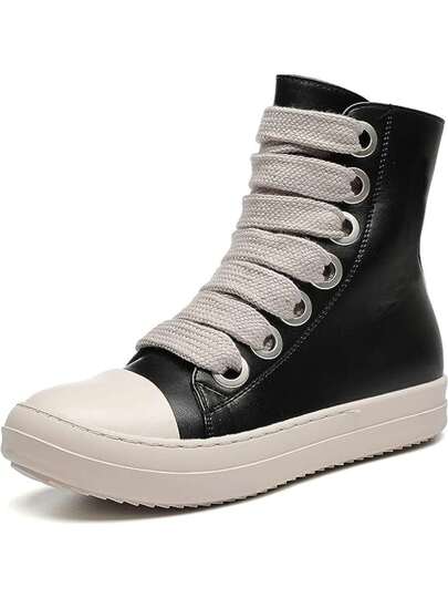 Men's High-top Fashion Canvas Shoes With Thick Band And Platform Sole - Black - View 1