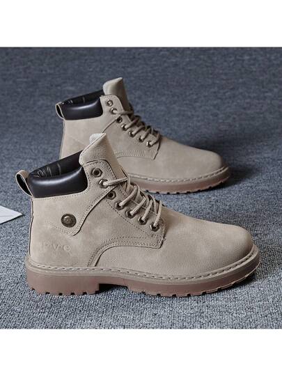 Men's Pu Leather Boots High-top British Style Work Boots Snow Boots - Khaki - View 1