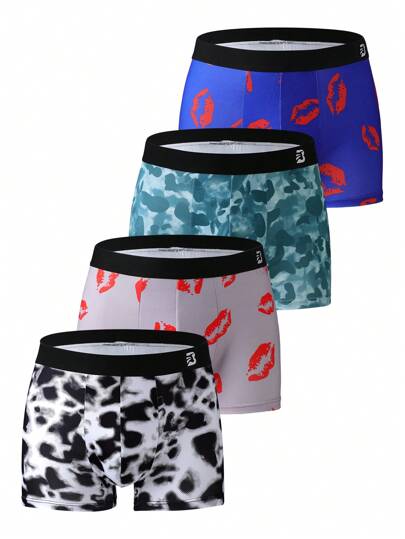 Men's Random Lip Print Briefs Undergarment , 4 Pcs - Multicolor - View 1