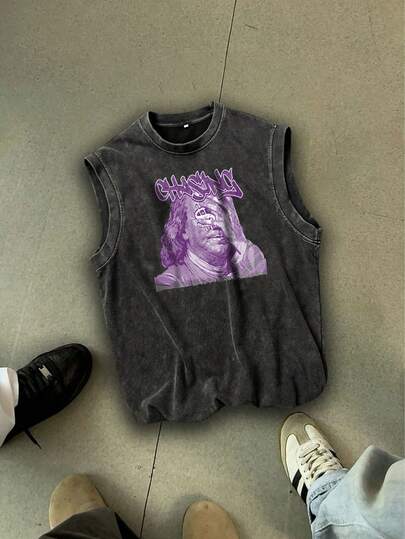 Men's Simple Casual Sleeveless Vintage Washed Round Neck Tank Top - Black - View 1