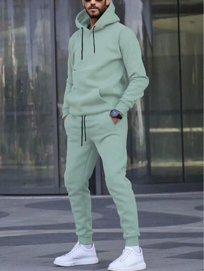 Manfinity Homme Men’s Solid Color Hoodie And Pants Tracksuit Set - Mint Green - View 1