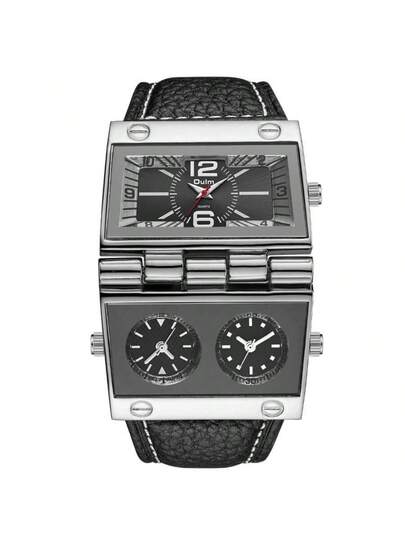 Men's Watch Large Dial Fashion Watch Multi Time Zone Rectangle Personalized Quartz Men's Watch - Black - View 1