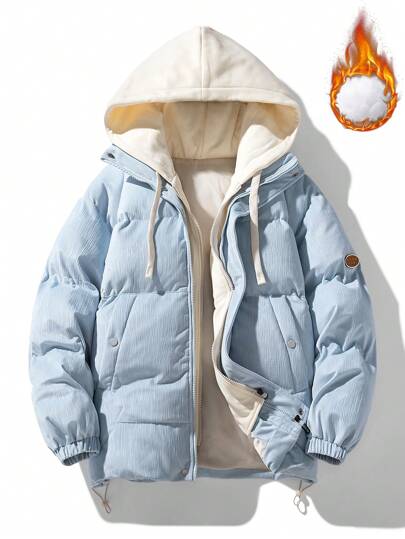 Men's Winter 2 In 1 Hooded Warm -Padded Coat - Blue - View 1