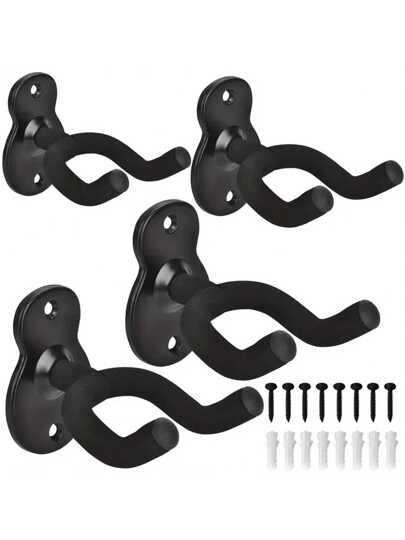 Metal Gourd-shaped Hook, Wall-mounted Guitar Hook For Folk, Bass, Electric And Classical Guitar And Other Musical Instruments, Available In 4/3/2/1 Set, Suitable For Hanging Clothes, Keys, Musical Instruments, Firearms, Handbags, Etc, Comes With Screw Base Hooks, Easy To Install. - Black - View 1