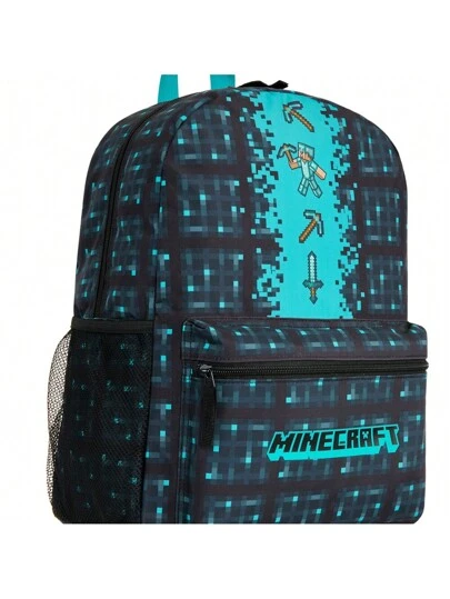 Minecraft Backpack Gaming Rucksack School Bag Creeper Daypack Travel Days Out PE Sports Gamer Gift - Blue - View 1