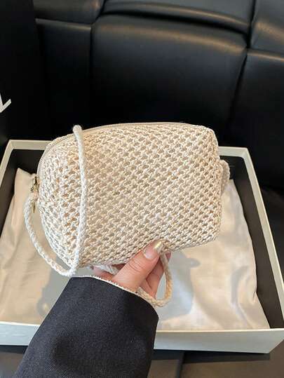 Mini Handmade Woven Bag, Countryside Style Straw Crossbody Small Square Bag For Women - Beige - View 1