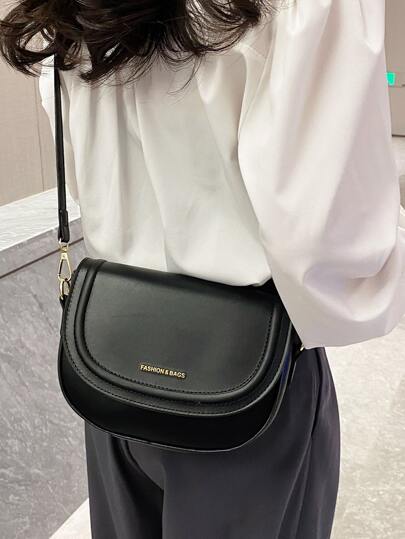 Mini Letter Detail Flap Saddle Bag - Black - View 1