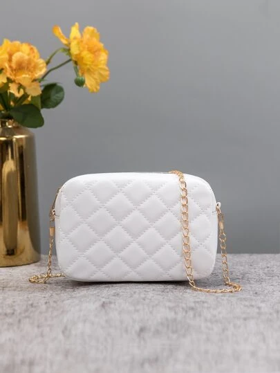 Mini Minimalist Quilted Chain Crossbody Bag - White - View 1