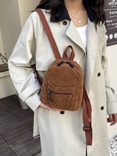 Mini Solid Color Nylon Fashionable Versatile Simple Backpack, Lightweight & Durable Small Backpack, Mini Backpack For Back To School & Travel - Brown - View 1