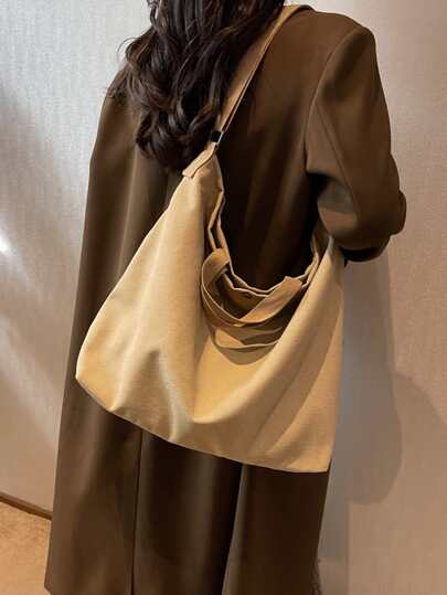Minimalist Canvas Shopper Bag - Khaki - View 4