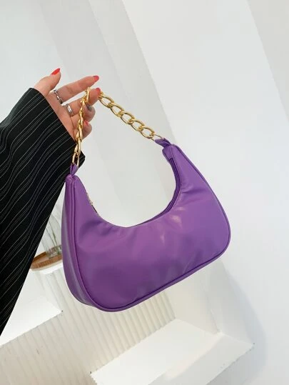 Minimalist Chain Saddle Bag , Purple - Purple - View 1