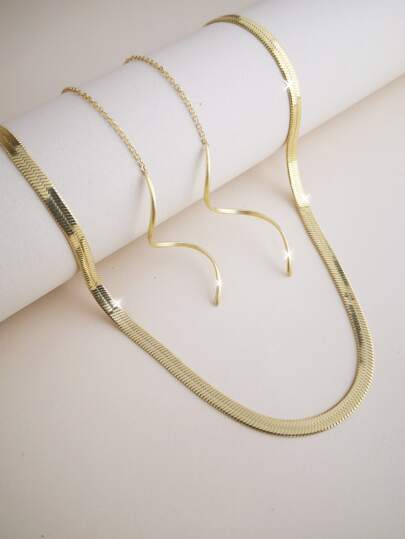 3P Hypoallergenic Stainless Steel Snake Chain + Rotating Thread Earrings & Extender - Yellow Gold - View 1