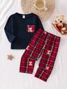 2pcs/Set Boys' Casual Bear Print Snug Fit Long Pants And Long Sleeve Pajama Set