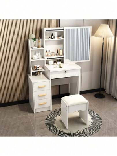Modern Wooden Dressing Table With Mirror 4 Drawers Sila