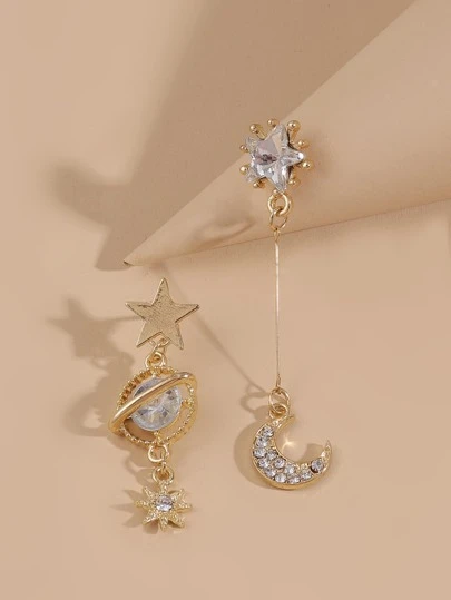 Moon & Star Drop Earrings - Yellow Gold - View 2