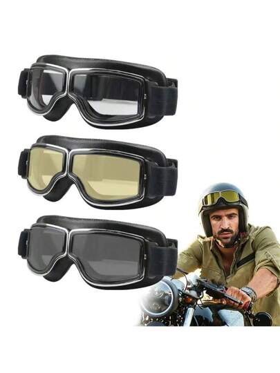 Motorcycle Goggles, Retro Goggles, Motorcycle Goggles, Riding Goggles, Retro WWII Goggles, Outdoor Sports Windproof Goggles, Off-Road Goggles, 1 Pair - Multicolor - View 1