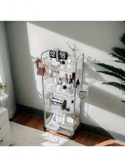 Movable Floor Rack Multi-Layer Storage Rack Snack Storage Cart Transparent Acrylic Trolley For Kitchen And Home Organization, Versatile Rolling Display And Utility Cart With Clear Panels, Durable Lightweight Construction, Easy Mobility, Space-Saving Design, Ideal For Pantry, Breakfast Bar, Office Break Room, Bakery, Event Decor, And Daily Organization - Multicolor - View 1