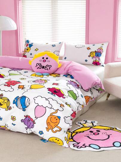 Mr Men Little Miss X SHEIN 3pc Cartoon Duvet Cover Set For Girls, Soft & Warm Bedding Set,Suitable For Single Bed/Double Bed/Queen Bed/King Bed, Dormitory/Home - Multicolor - View 10