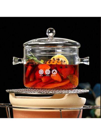 Multi-Capacity Glass Pot With Lid And Dual Handles, Transparent Heat-Resistant High Borosilicate Glass Bowl, Glass Cooking Pot, Ideal For Cooking Pasta And Soup - Multicolor - View 14