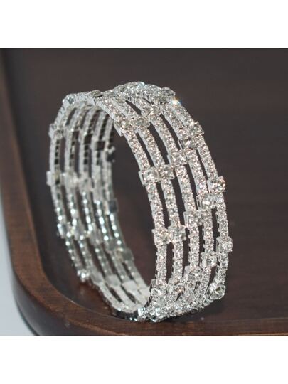 Multi-Layer Fashionable Rhinestone Wrapped Bangle Bracelet For Women, Handmade - Silver - View 1