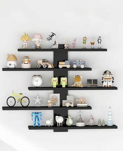 Multi-Layer Wall-Mounted Storage Rack, Made Of Fiberboard, Multi-Functional Display Shelf, Suitable For Office And Home Decor, Ideal For Displaying Figurines And Ornaments, Both Stylish And Practical. - Black - View 1