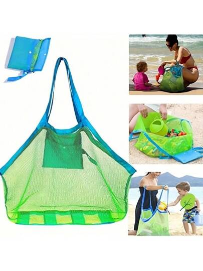 Multi-Use Large Mesh Storage Bag - Ideal For Beach Toys, Picnic Gear, And Travel Essentials; Durable Polyurethane - Green Mesh Bag - View 1