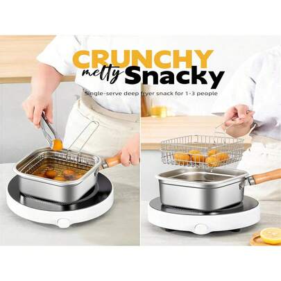 Multipurpose Stainless Steel Deep Frying Pot Set With Basket, Tongs & Detachable HandlePerfect For Home Cooking, Indoor Outdoor Use & Garden Parties - Silver - View 9