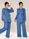 Mulvari Women's Solid Color Single Breasted Flare Sleeve Casual Top And Pants Set 2 Pieces Set