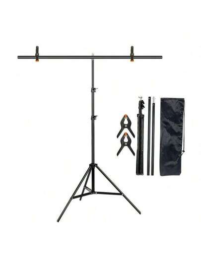 NEWKS T-Shape Backdrop Stand 6.5x4.9FT, Adjustable Background Stand Kit Sturdy Photo Green Screen Holder With 2 Spring Clamps & Carry Bag For Party, Photography, Video - Black - View 1