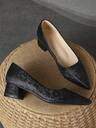 MonaNise Women's Fashion Comfy Stone Textured Pointed Toe Low Cut Slip-On Pumps, Retro Brown For Commuting, Business, Outdoor, Travel, Casual, High-End, Black