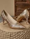 Women's Fashion Green Pointed Toe, Navy Blue Stone Texture, Apricot Color Covered Heel Pumps, Suitable For Holiday, Travel, Walking, Outdoor, Retro Casual, Versatile, High-End Black 5cm Shoes