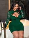 NU&NOW Plus Size Women Sexy Hollow Out Long Sleeve Dress