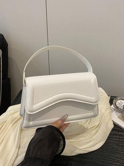 New Orange Ladies' Solid Color PU Small Square Bag, Simple And Stylish Handbag For Going Out, And Versatile. - White - View 1