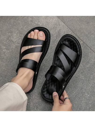 Men's Summer Fashion Beach Vacation Style Flat Sandals, Classic Design Indoor/Outdoor Casual Slippers - Black - View 1