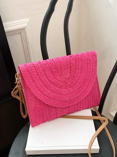 Yogodlns Neon Pink Straw Bag Paper Funky,Perfect For Summer Beach Travel Vacation - Hot Pink - View 1