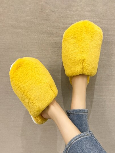 Neon Yellow Fuzzy Bedroom Slippers - Yellow - View 1