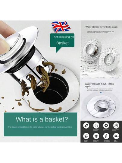 NetHong 1/2/3/4PCS Pop Up Drain Plug Stopper Basin Core Bounce Drain Filter Bathroom Sink - Silver - View 9