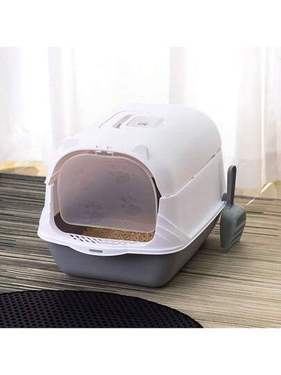 NetHong Large-Sized Cat Litter Box With A Transparent Lid To Prevent Odors And Litter Leakage; Detachable Or Installable. | Large-Capacity Cat Litter Box - Grey - View 1