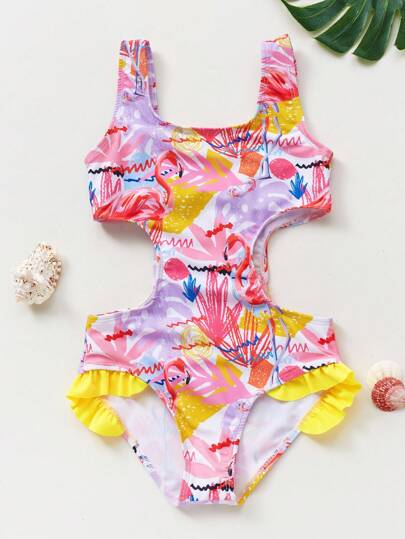 New Arrival Flamingo Printed Girls' One-Piece Swimsuit For 5-12 Years Old Kids - Multicolor - View 1