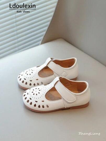 New Style Girls' Soft Bottom Non-Slip Flat Shoes, Casual Princess Shoes With Hollow Design - Beige - View 1