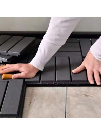 Nicoman 36P Interlocking Deck Tile, 12 "X 12" PP Outdoor Floor, All-Weather Use, Patio Floor Trim Tile - Black - View 1